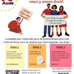- AESH: pour l’octroi des jours de fractionnement dès cette année!Ce jeudi 4 décembre, le SNUDI FO 11 a tenu un stage de formation syndicale à l’attention des AESH pour leur faire connaître leurs droits et pour leur défense. Le combat lancé au printemps 2025 porte ses fruits puisque certains AESH sont désormais autorisés à poser leurs jours de fractionnement. Ce que nous voulons c’est […]